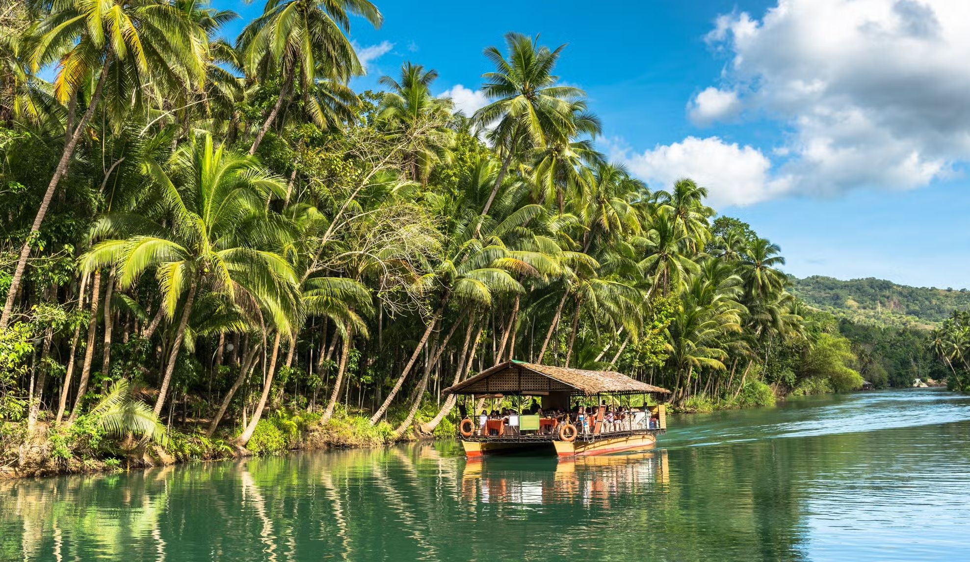 Cruise down the jade-green Loboc River, which winds through lush mountains before emptying into the Bohol Sea.